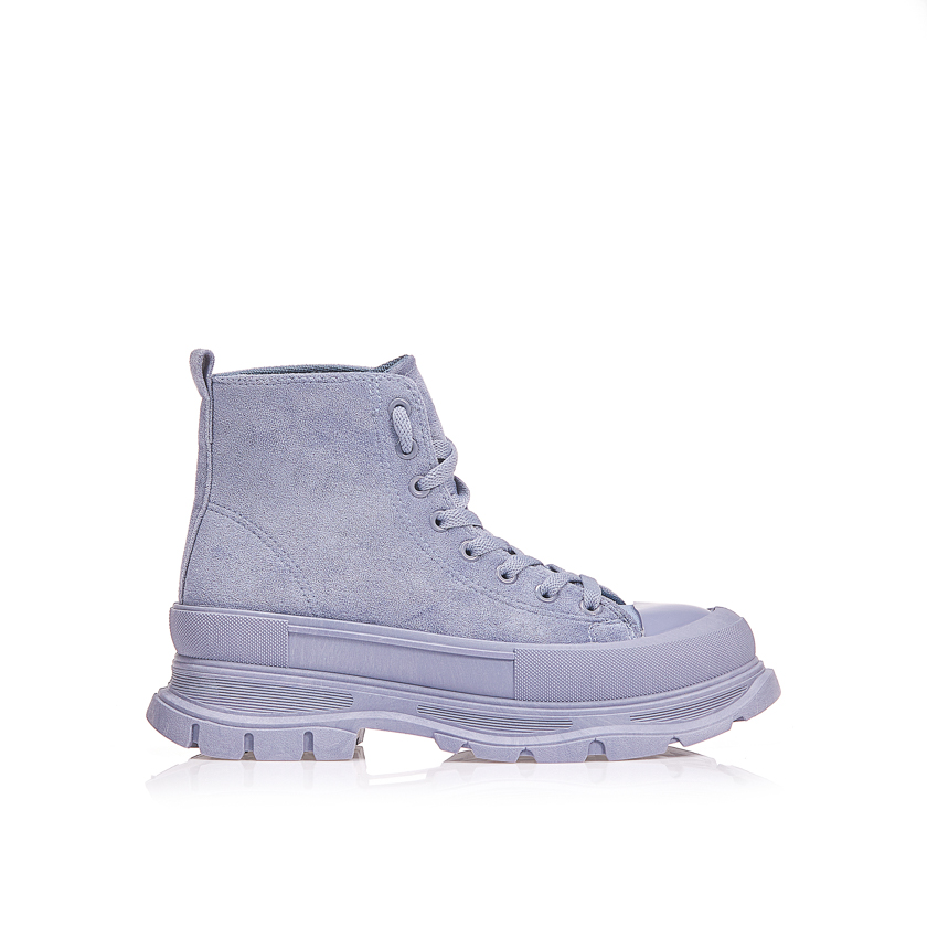 Μποτάκια σουέτ σε μπλε χρώμα. Δετά με κορδόνια.Ύψος σόλας 6 cm.Κωδικός: 461605bu